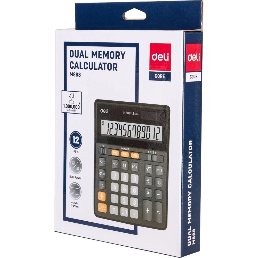Калькулятор настольный ПОЛНОРАЗМ. Deli EM888, 12-р,дв.пит, 202х159мм,черн