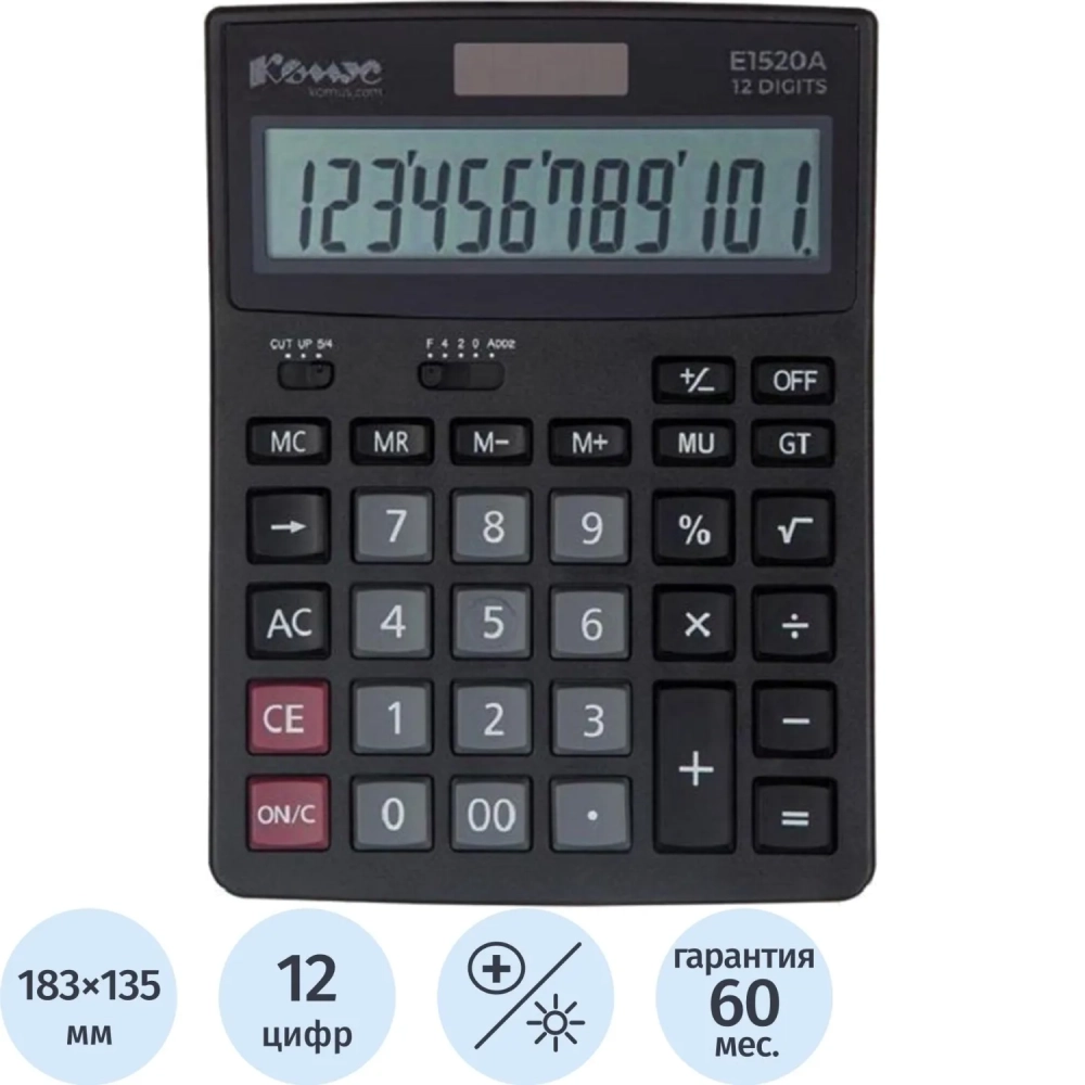 Калькулятор настольный ПОЛНОРАЗМ. КОМУС E1520A,12-р, дв.пит,183x135мм,черн