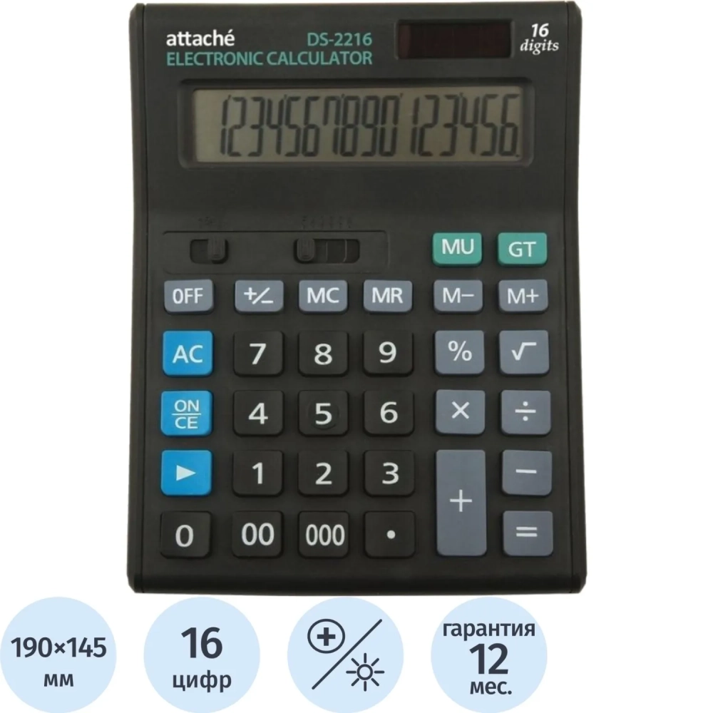 Калькулятор настольный ПОЛНОРАЗМЕРНЫЙ Attache 16 разр., черный