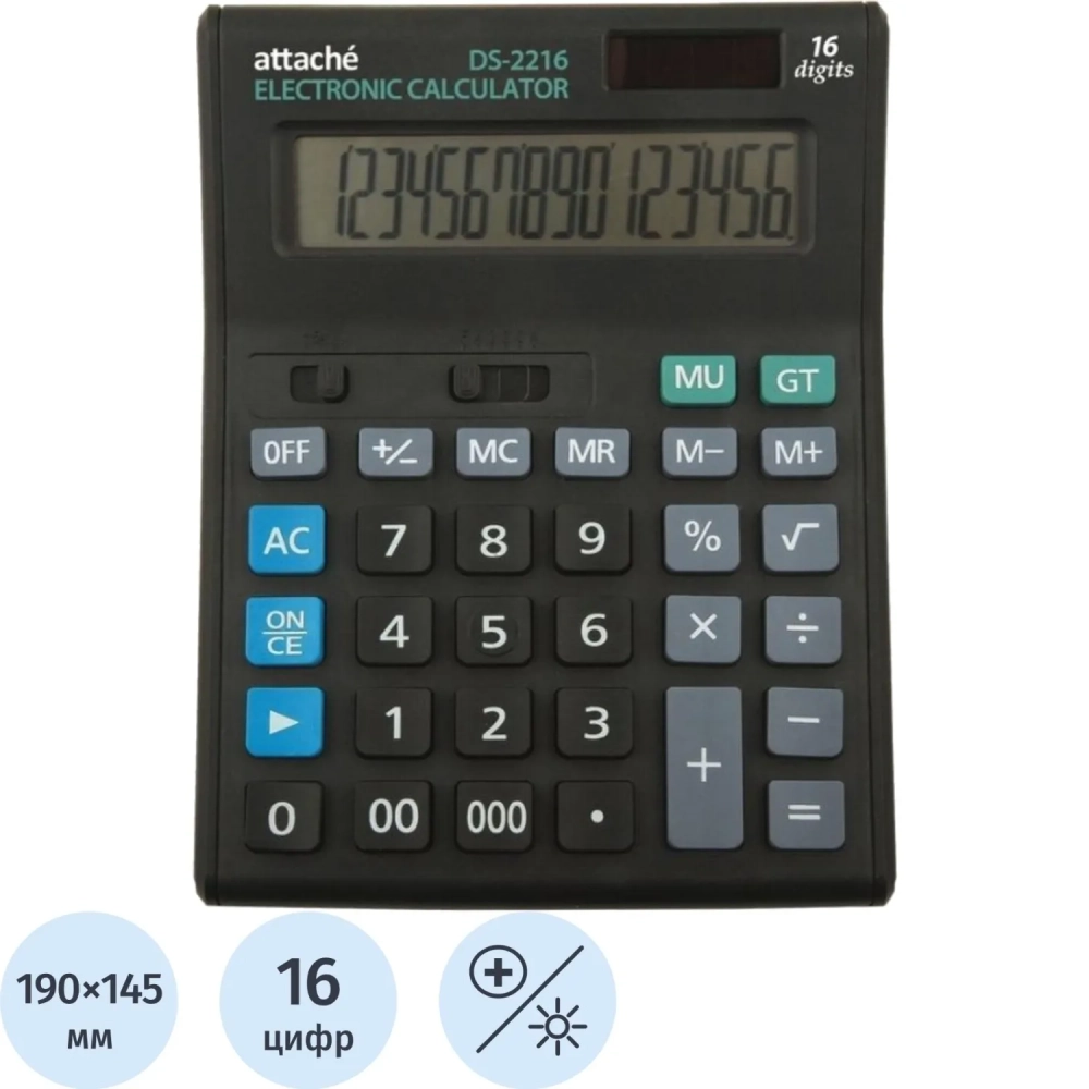 Калькулятор настольный ПОЛНОРАЗМЕРНЫЙ Attache Economy 16 разр., черный