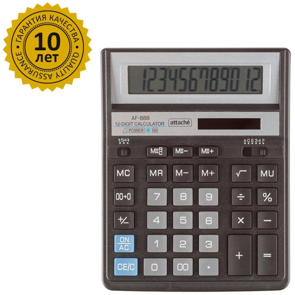 Калькулятор настольный ПОЛНОРАЗМЕРНЫЙ AttacheAF-888,12р,дв.пит204x158мм,ч/с