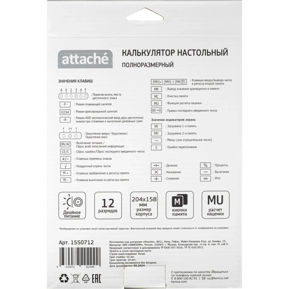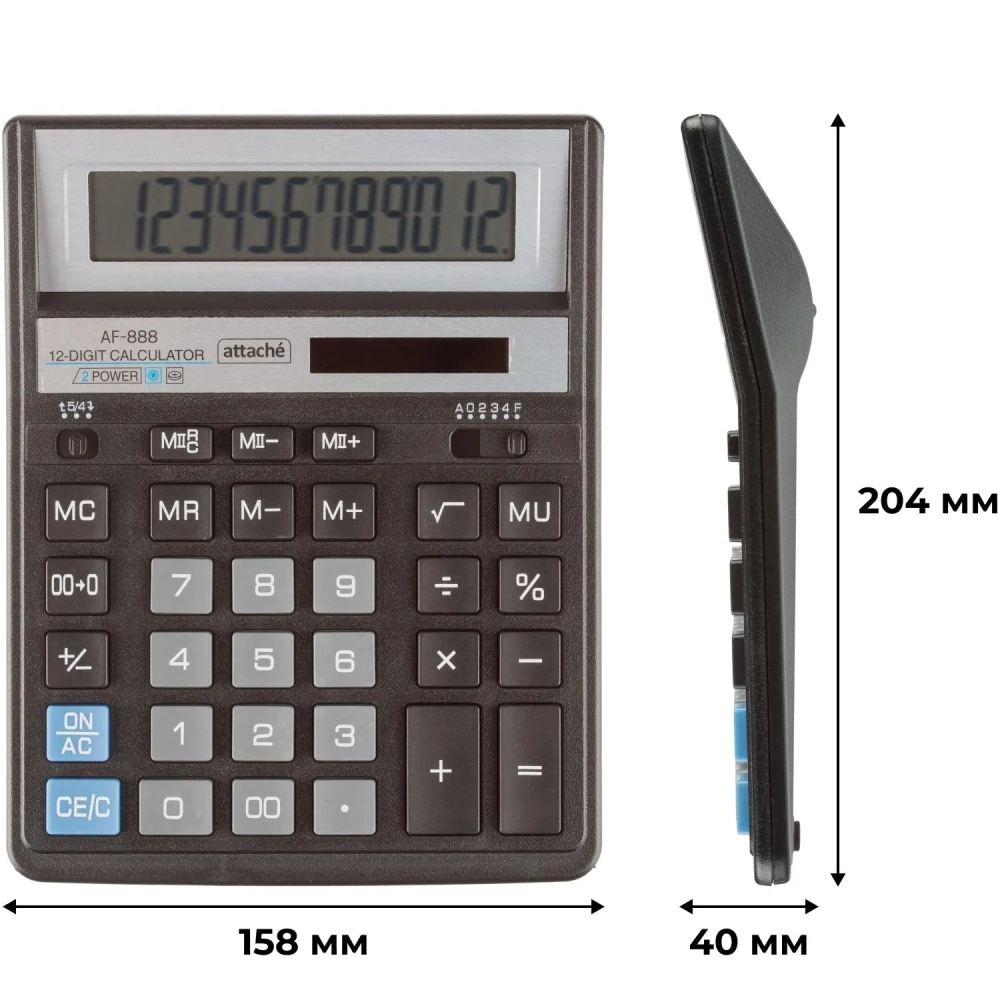 Калькулятор настольный ПОЛНОРАЗМЕРНЫЙ AttacheAF-888,12р,дв.пит204x158мм,ч/с