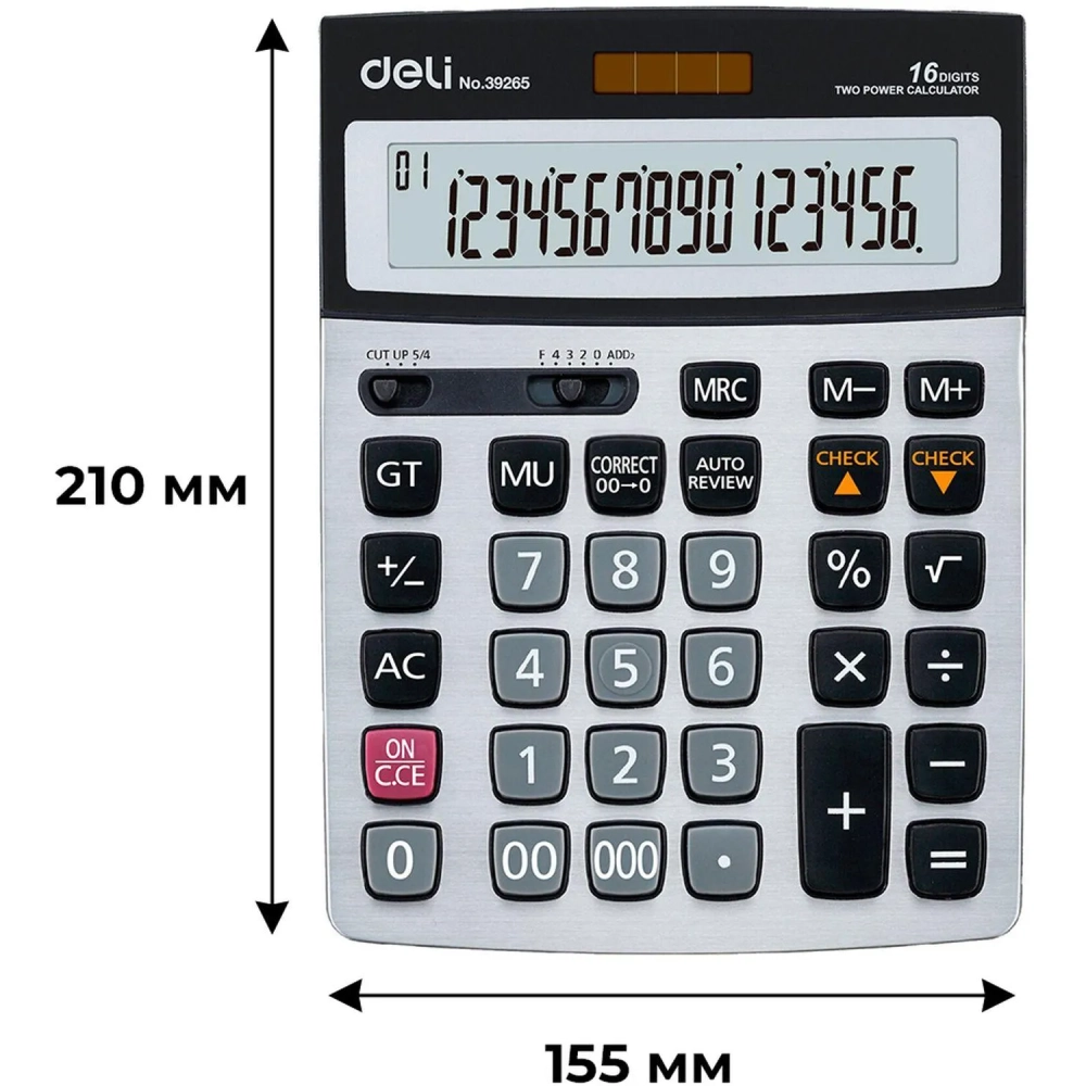 Калькулятор настольный ПОЛНОРАЗМЕРНЫЙ Deli E39265 серый 16-разр