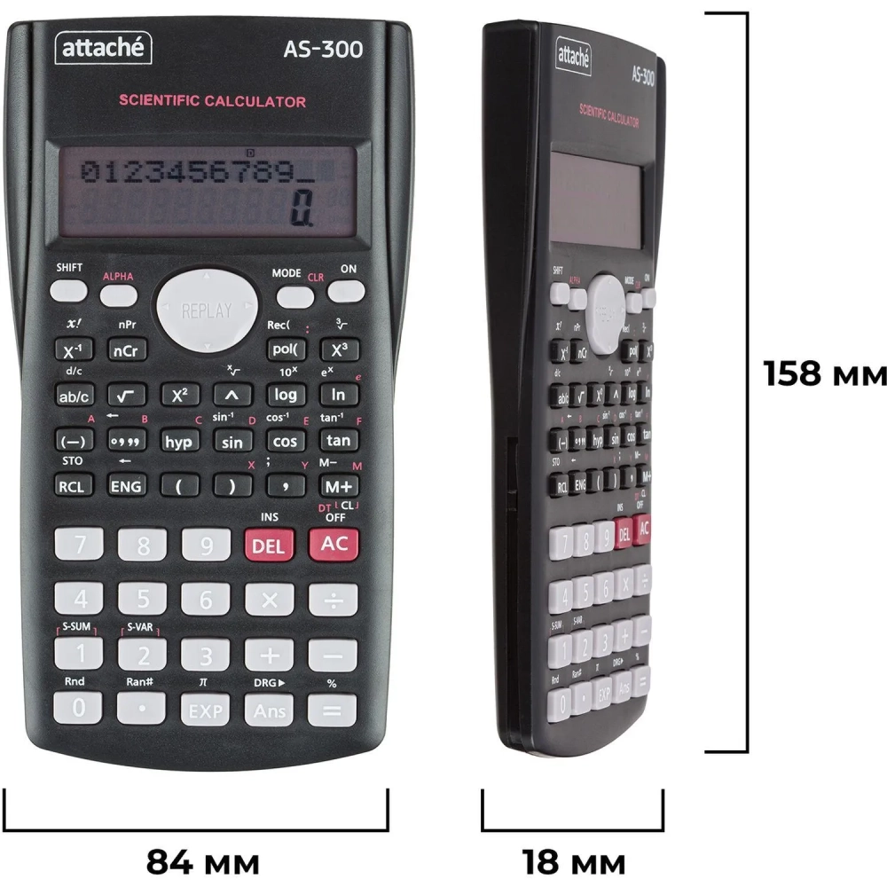 Калькулятор научный Attache AS-300,10р,2 стр,пит.от бат.,240 фун,темн.сер