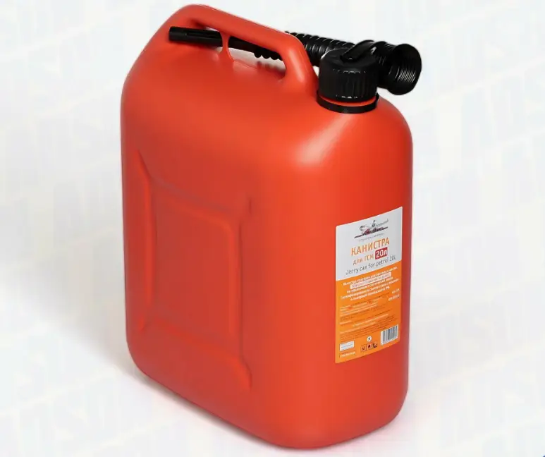 Канистра. Автомобильный аксессуар для транспортировки и хранения бензина, дизеля или масла. Изготовлена из первичного пластика (ПЭНД) с антистатическими свойствами;