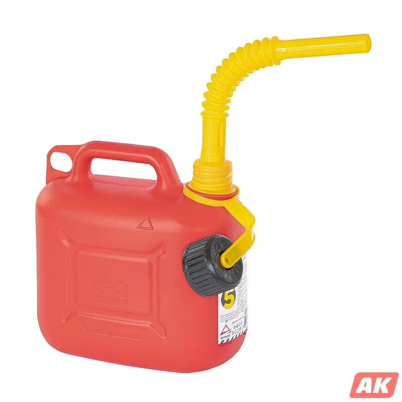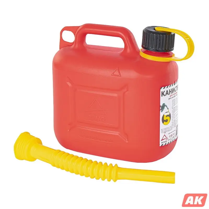 Канистра для бензина ARNEZI A1006001 — пластиковая ёмкость объёмом 5 литров с крышкой, защищающей от детей, и лейкой для разлива топлива.