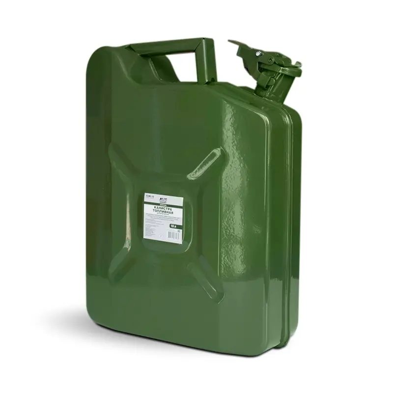 Канистра предназначена для хранения жидкостей, в том числе топлива и топливных смесей. Изготовлена из стали холодного проката. Внешняя поверхность оцинкована и окрашена. Внутреннее фосфатированное антикорозийное покрытие препятствует образованию ржавчины.