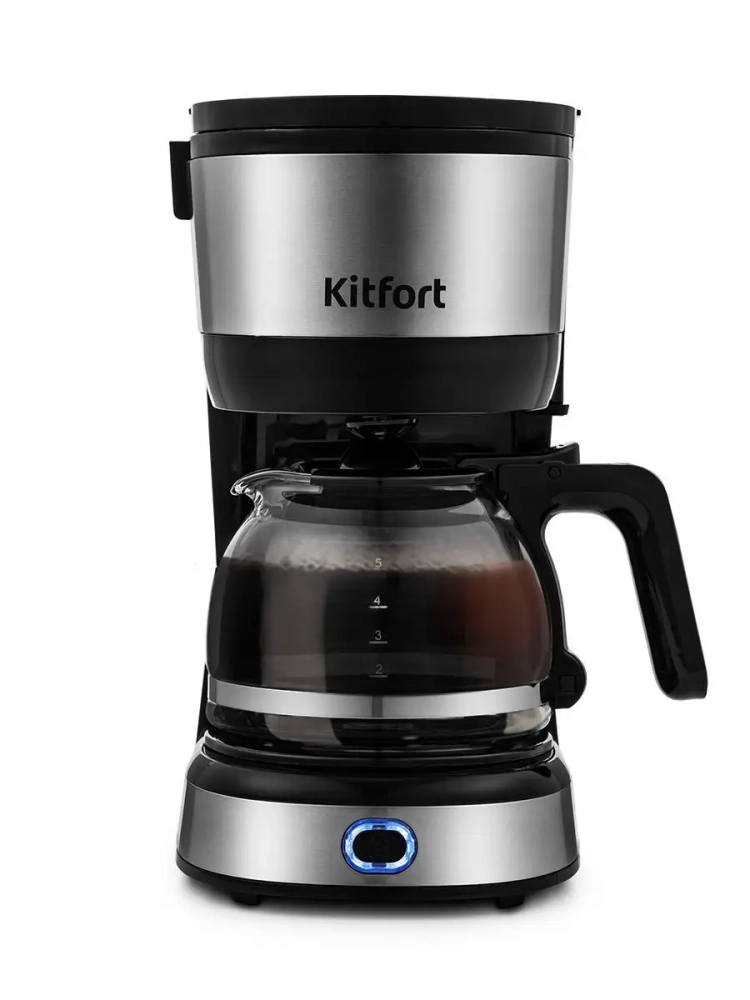 Капельная кофеварка Китфорт КТ-730 — это идеальное бытовое решение для любителей ароматного кофе. Эта кофеварка, работающая от сети с мощностью 750 Вт, позволяет быстро и удобно приготовить любимый напиток в домашних условиях или офисе. Управление осуществляется всего одной кнопкой, что делает процесс приготовления простым и интуитивно понятным. Вода в капельной кофеварке нагревается до температуры 80–90 °С и медленно проходит через фильтр с молотым кофе. Это обеспечивает насыщенный вкус и аромат вашего напитка. После завершения процесса приготовления устройство автоматически переходит в режим подогрева, поддерживая температуру готового кофе на платформе с подогревом в течение 40 минут. Электрокофеварка имеет прозрачный корпус объемом 600 мл, что позволяет контролировать количество оставшегося напитка. Противокапельная система предотвращает проливание при вынимании кофейника из устройства — вы можете налить себе чашку свежего кофе даже во время его приготовления. Эта автоматическая модель от Kitfort оснащена функцией автоотключения для безопасности использования: через определенное время после завершения работы она автоматически выключается, экономя электроэнергию и обеспечивая безопасность вашего дома. Кофейный аппарат Китфорт КТ-730 идеально подходит для использования как дома, так и на работе благодаря своей компактности и функциональности. Она способна приготовить до пяти чашек по 120 мл за один раз — отличный выбор для небольшой компании или семьи.