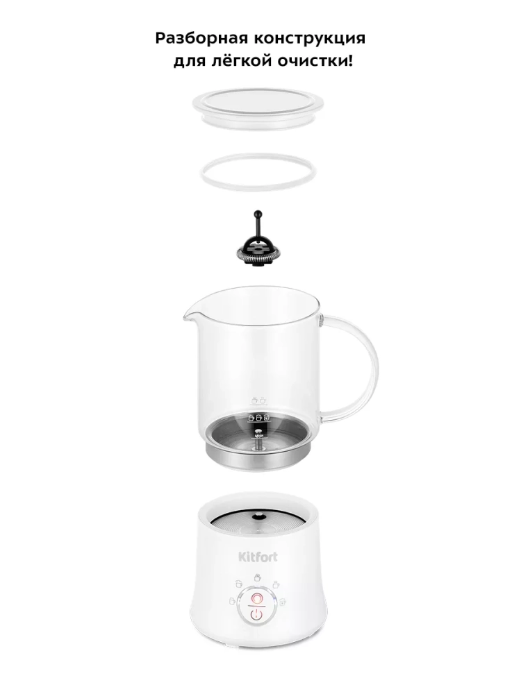 Капучинатор Китфорт КТ-7199 — идеальный выбор для тех, кому не хочется осваивать процесс самостоятельного взбивания молока, следить за температурой, добиваться вручную плотной однородной пены. Достаточно наполнить капучинатор нужным количеством молока и выбрать режим. Через несколько минут холодная или горячая молочная пена готова. Также в капучинаторе можно готовить какао, горячий шоколад или смешивать и подогревать жидкости.
