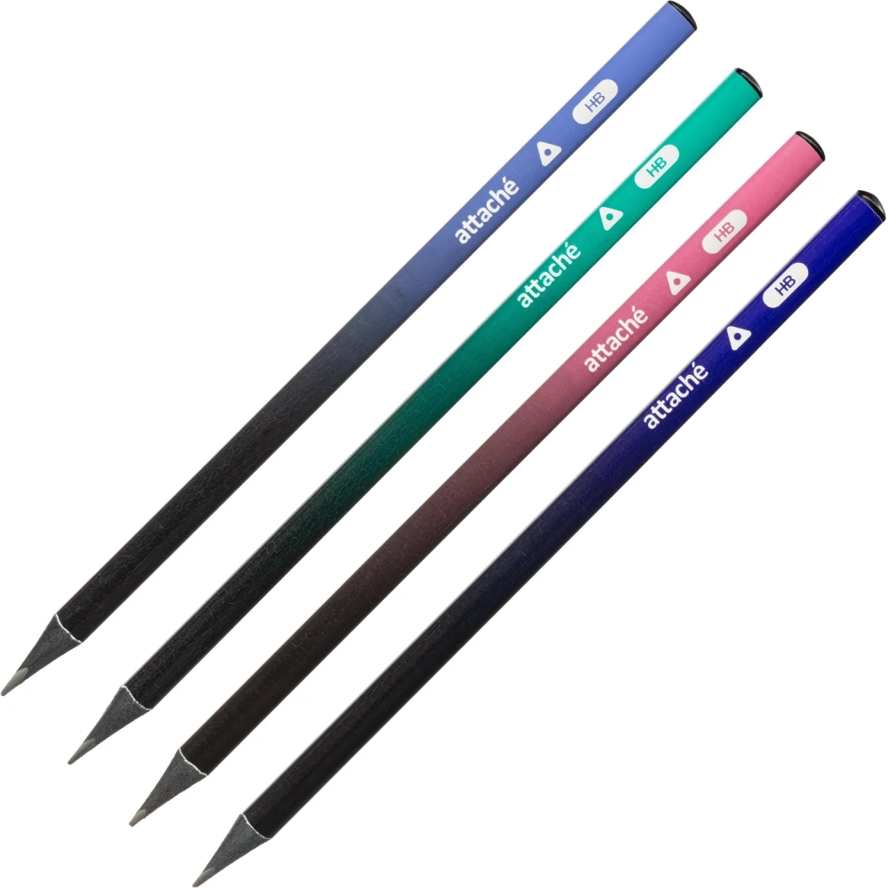 Карандаш чернографитный Attache Градиент, трехгран,черн.дер.,б/ласт,ассорти