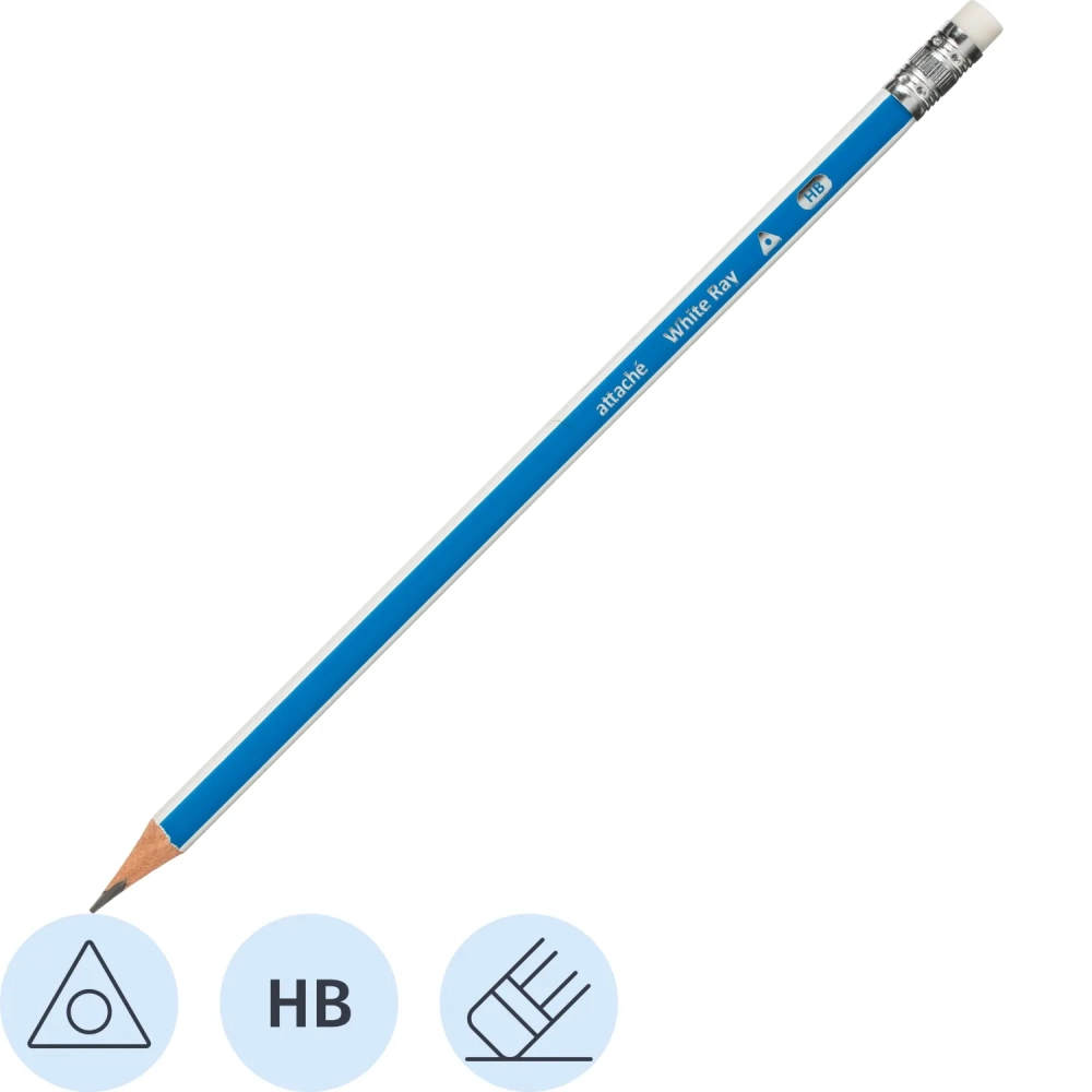 Карандаш чернографитный Attache White Ray, трехгранный, с ласт, синий/белый