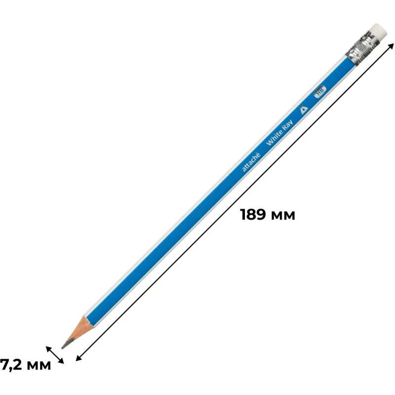 Карандаш чернографитный Attache White Ray, трехгранный, с ласт, синий/белый