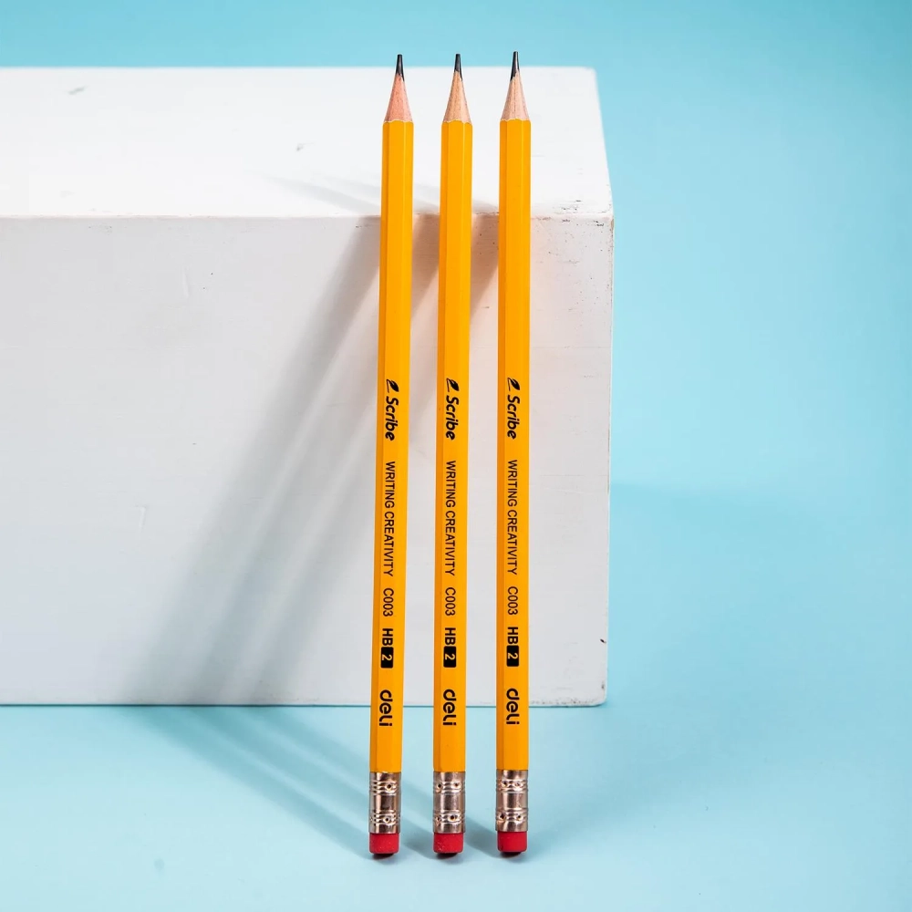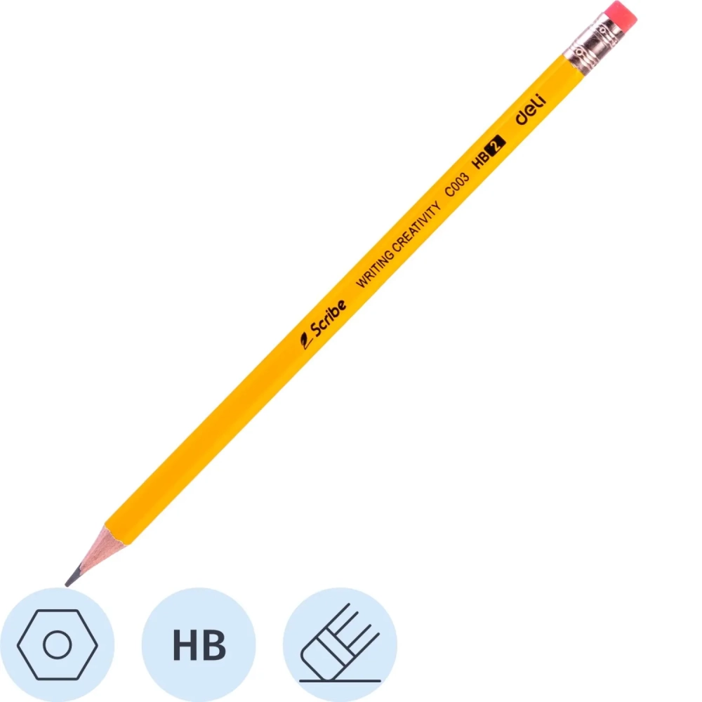 Карандаш чернографитный Deli Scribe HB 6-гр, с ластиком, желтый EC003-HB