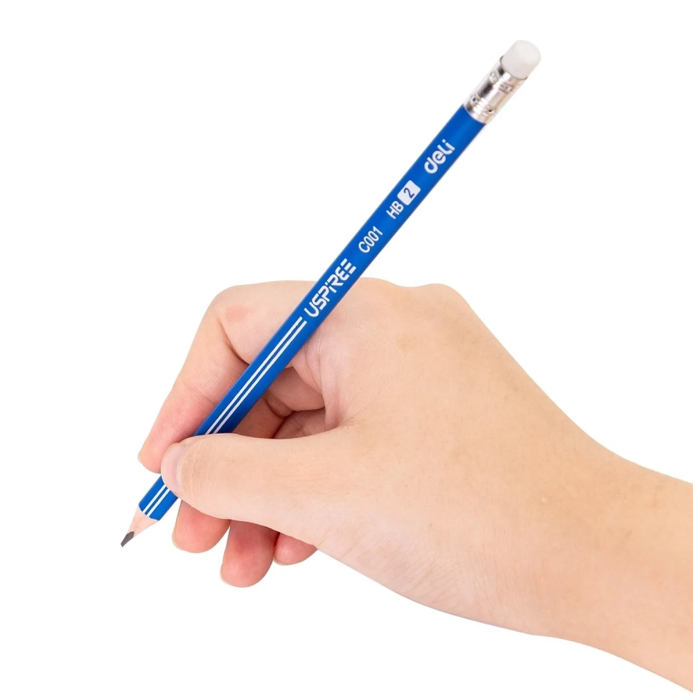 Карандаш чернографитный Deli Uspire HB трехгранный с ластиком, синий корпус