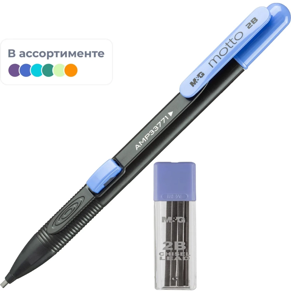 Карандаш механический M&G 2мм 6 гриф./туба в наб., в асс блистер HAMP0173