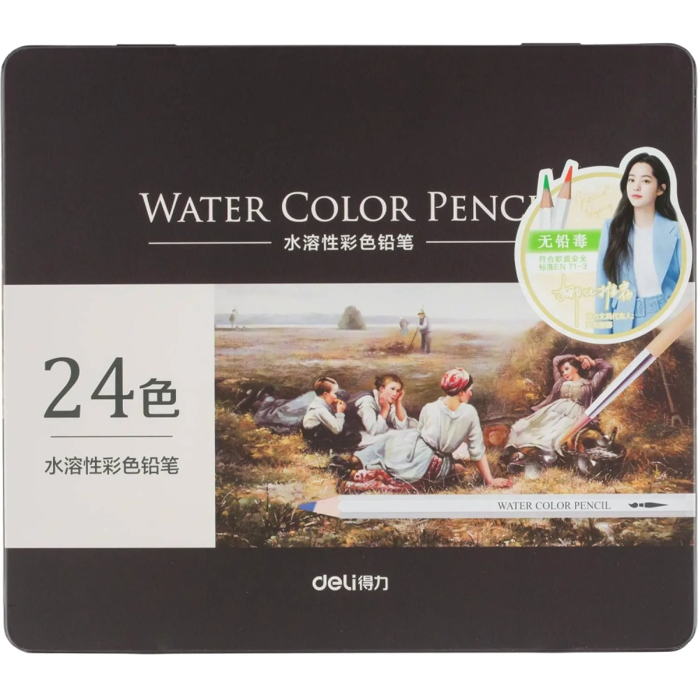 Карандаши акварельные Deli липа 24 цв/наб мет.кор. 6521