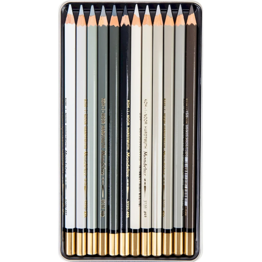 Карандаши акварельные MONDELUZ серые 12цв/наб мет.кор 3722012010BL