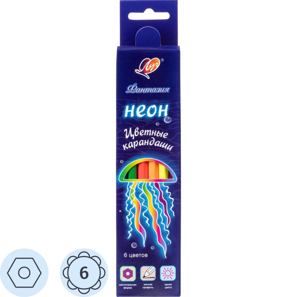 Карандаши цветные Фантазия, неон, 6 цв. 33С 2191-08 набор