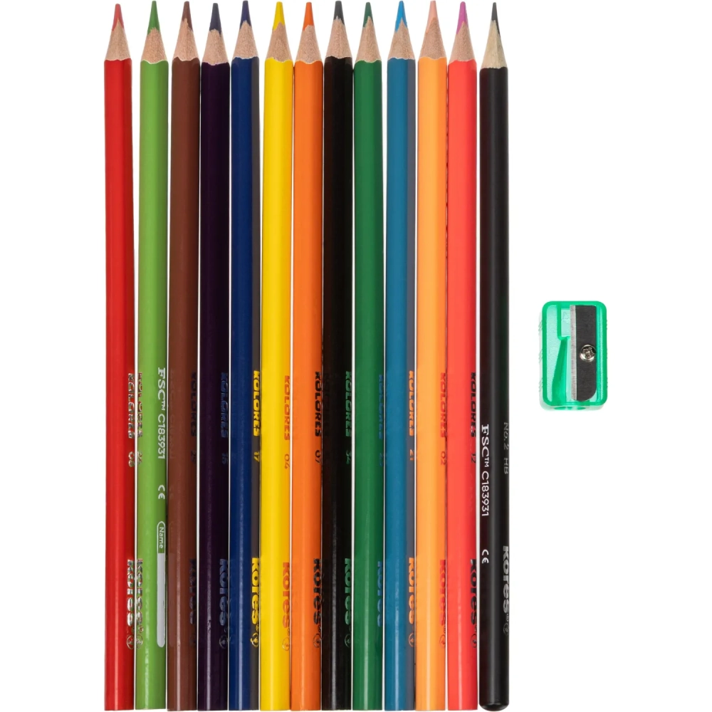 Карандаши цветные KOLORES трехгр. 12шт/наб + 1 ч/г,точилка,карт.тубус 93319