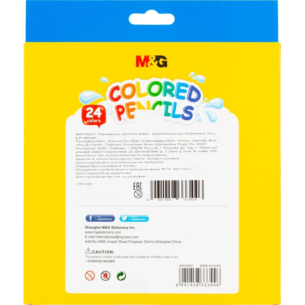 Карандаши цветные M&G деревянные шестигранные, 24 цв в наборе