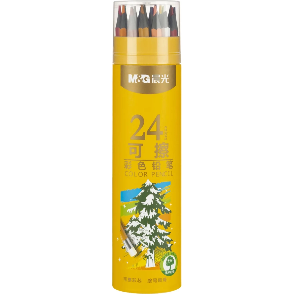 Карандаши цветные M&G, пластиковые, шестигран, стираемые, 24 цв/наб, в тубе