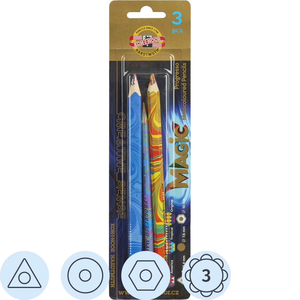 Карандаши цветные многоцветные MAGIC 9038, 3шт ассорти: ORIGINAL, AMERICA