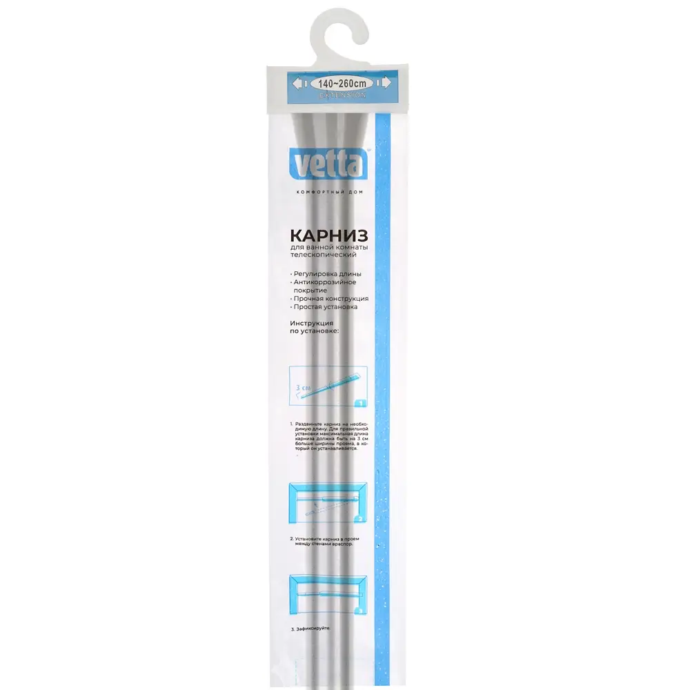 Карниз для шторы в ванную тм VETTA 2,6м, алюминий, серебристый