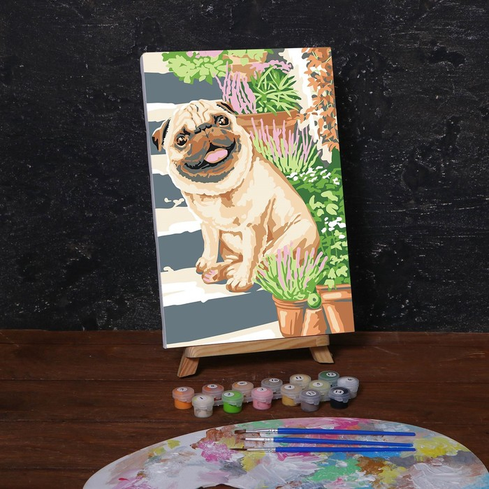 Картина по номерам на холсте с подрамником «Мопс» 20х30 см понравится и детям, и взрослым.