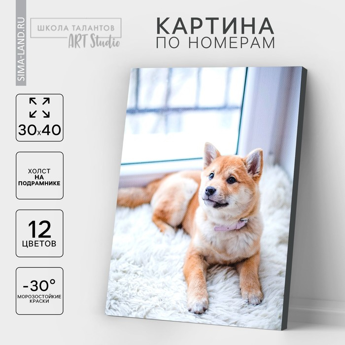 Картина по номерам на холсте с подрамником «Пёс на ковре», 40х30 см понравится и детям, и взрослым.