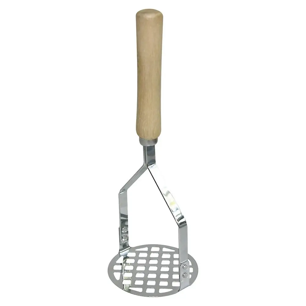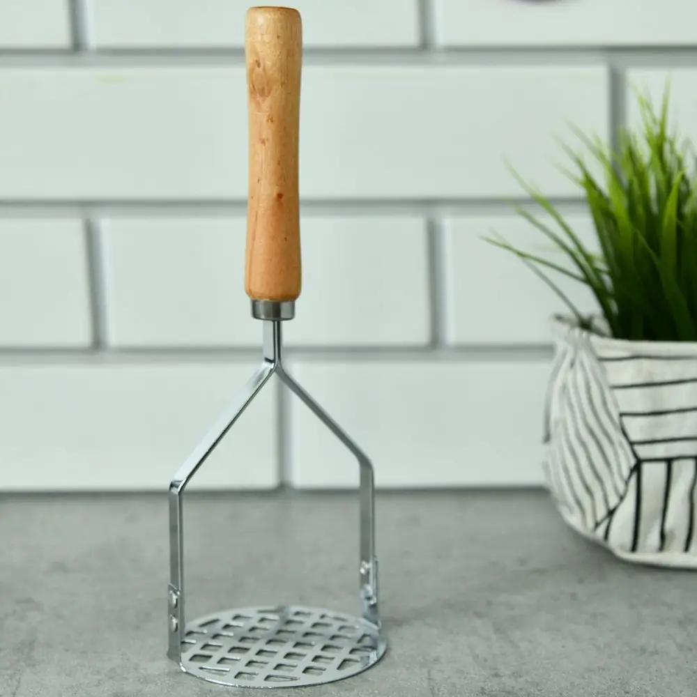 Компания «Мультидом» представляет картофелемялку в ретро стилистике с удобной деревянной ручкой. Рабочая часть изделия изготовлена из стали с хромированным покрытием. Металлические инструменты прочные, надежные и удобно лежат в руке.