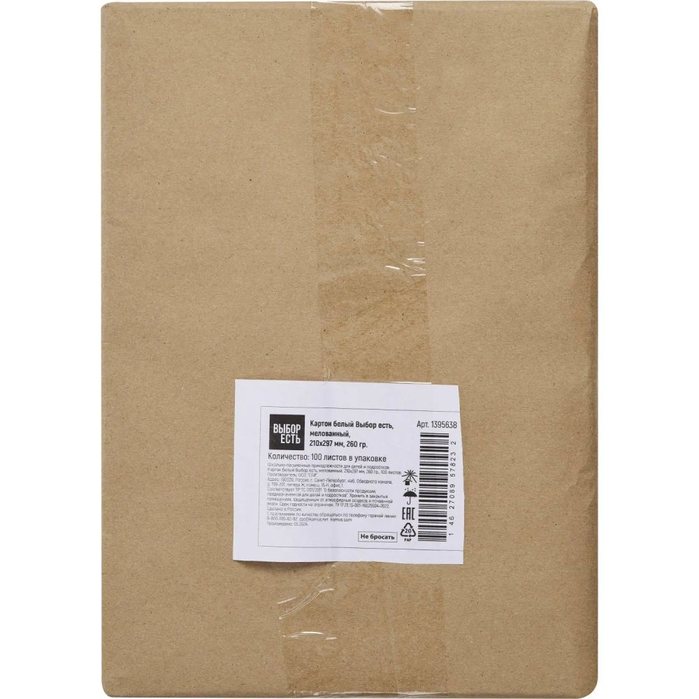 Картон белый 100л,А4,мелов,240гр, уп.крафт