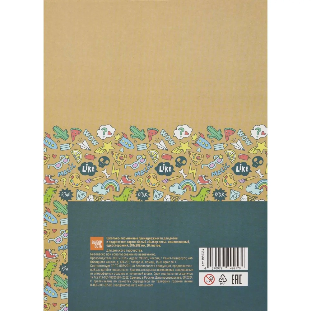 Картон белый Выбор Есть 20л А4 немелован. папка