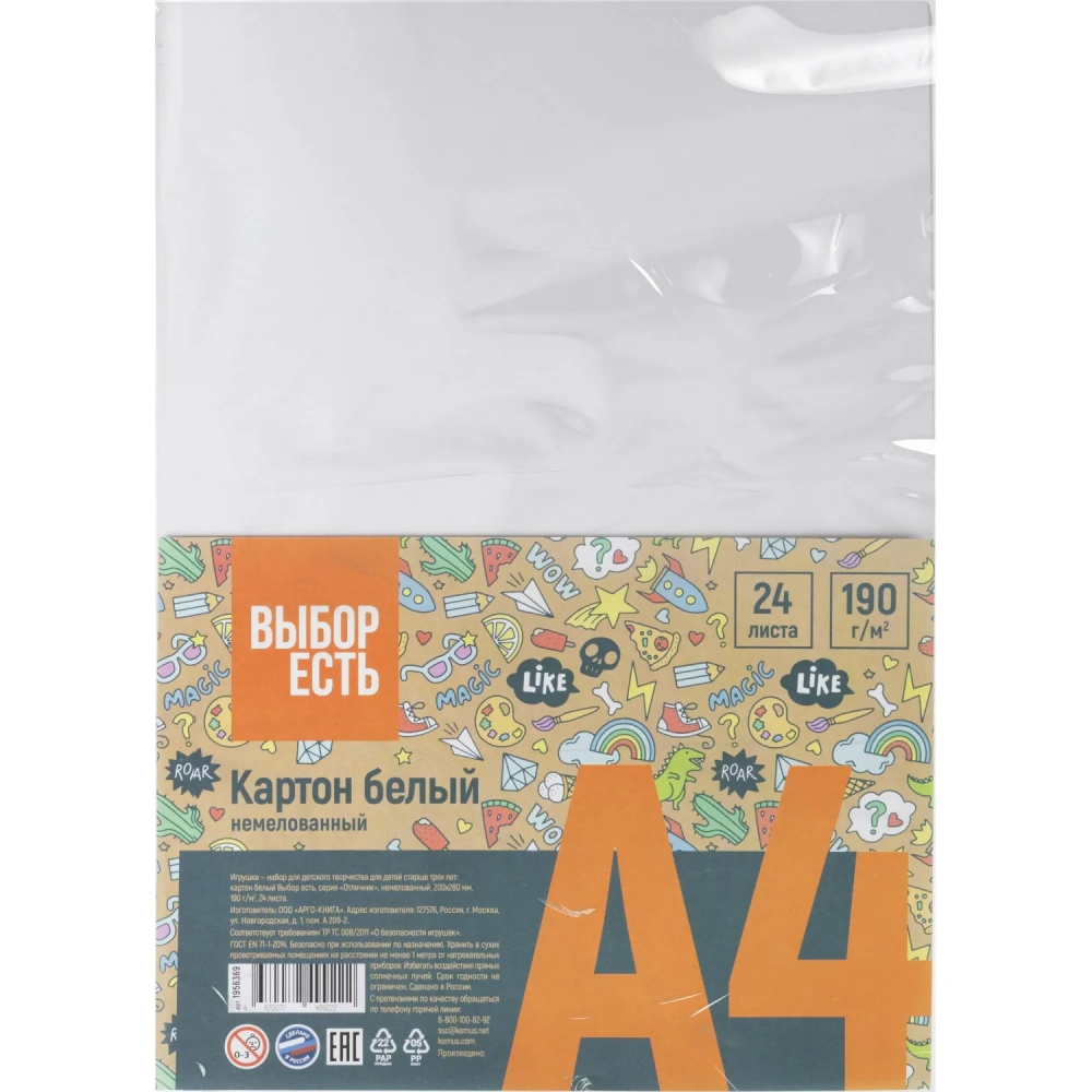 Картон белый Выбор есть Отличник 24л А4 немелован.пакет