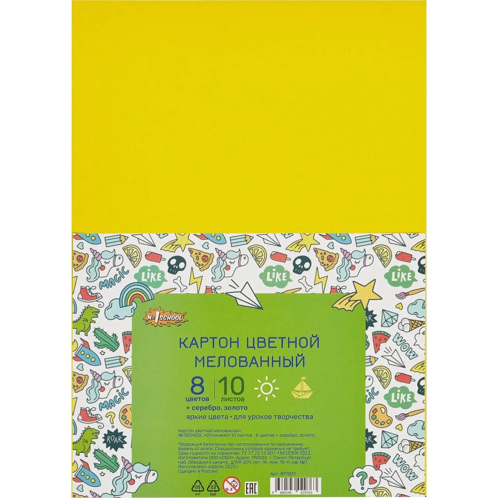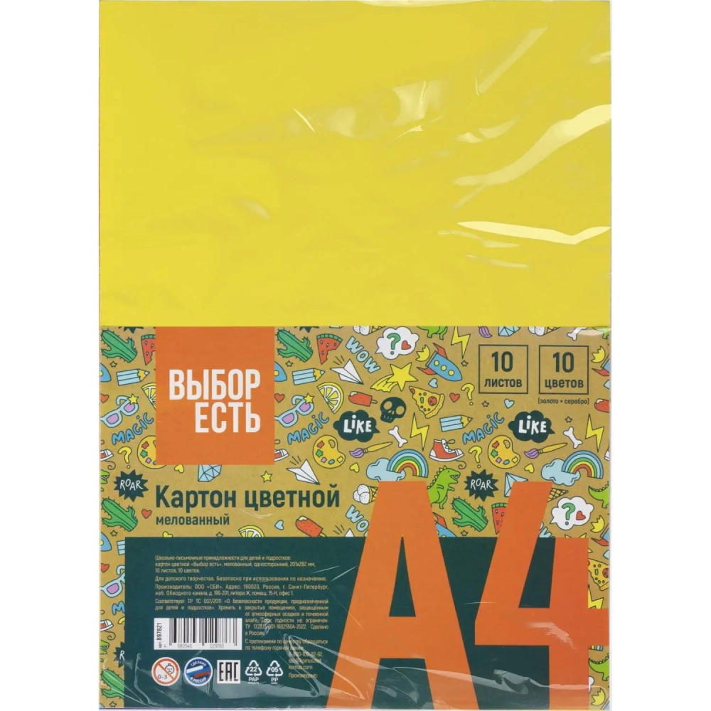 Картон цветной 10л.10цв.А4 мелован(золото+сереб) Отличник