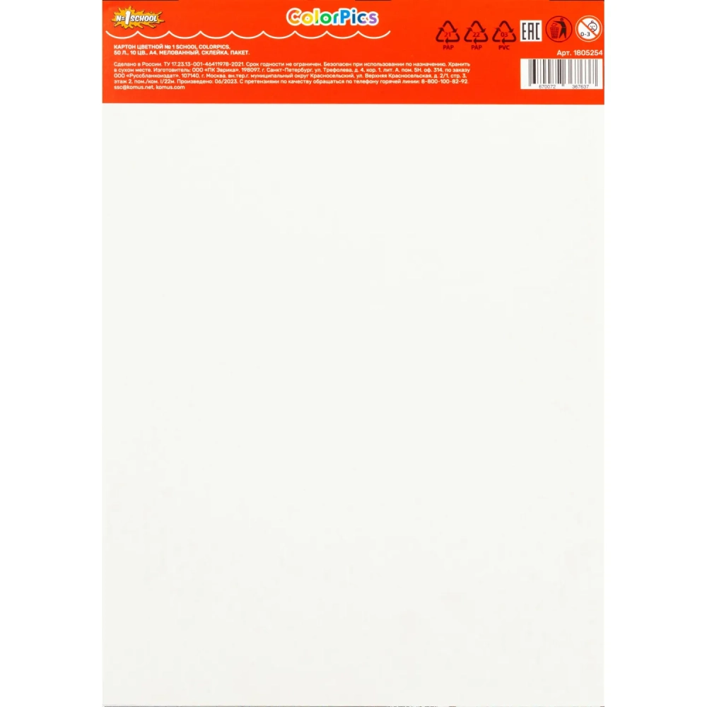 Картон цветной 50л 10цвет А4 мелов Отличник, пакет