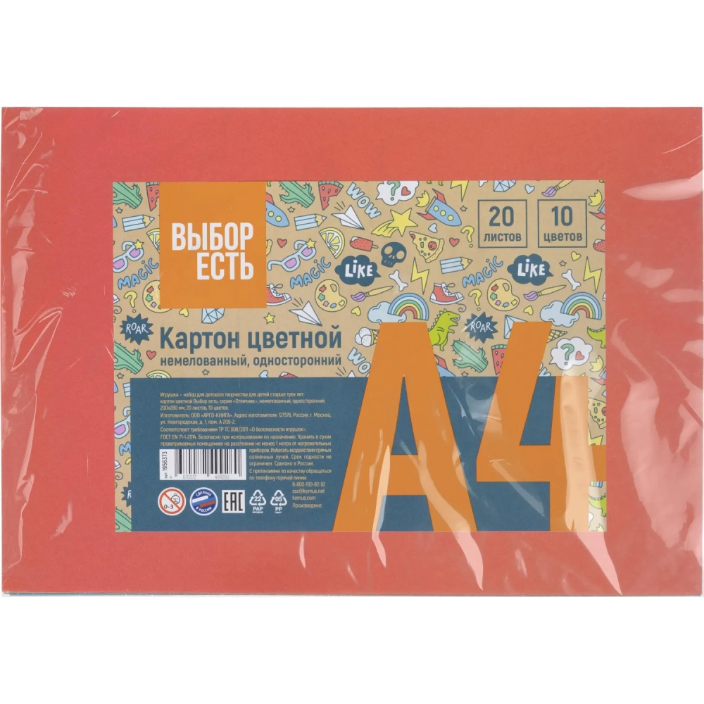 Картон цветной Выбор есть Отличник 20л10цв А4 немелован.пакет