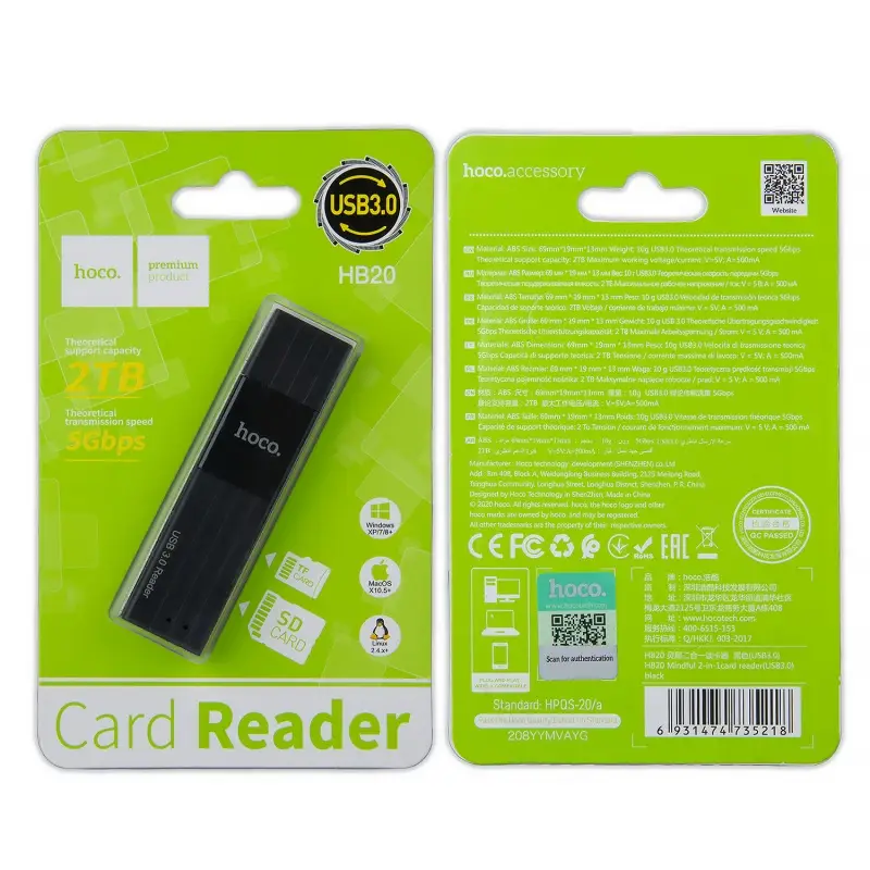 # Картридер 2 в 1 USB 3.0 HB20 HOCO черный