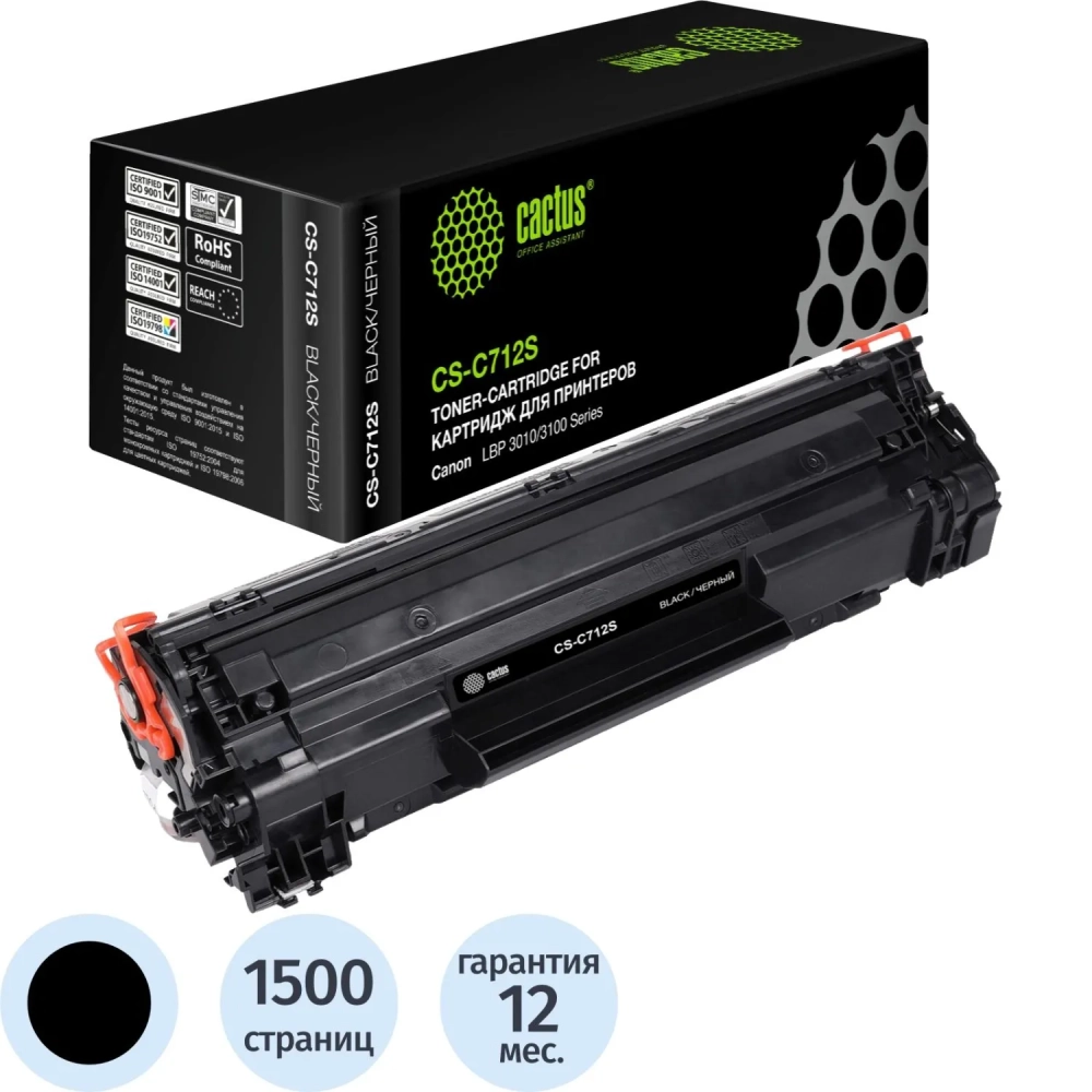 Картридж лазерный Cactus CS-C712S 712 чер. Для CanonLBP-3010/3100