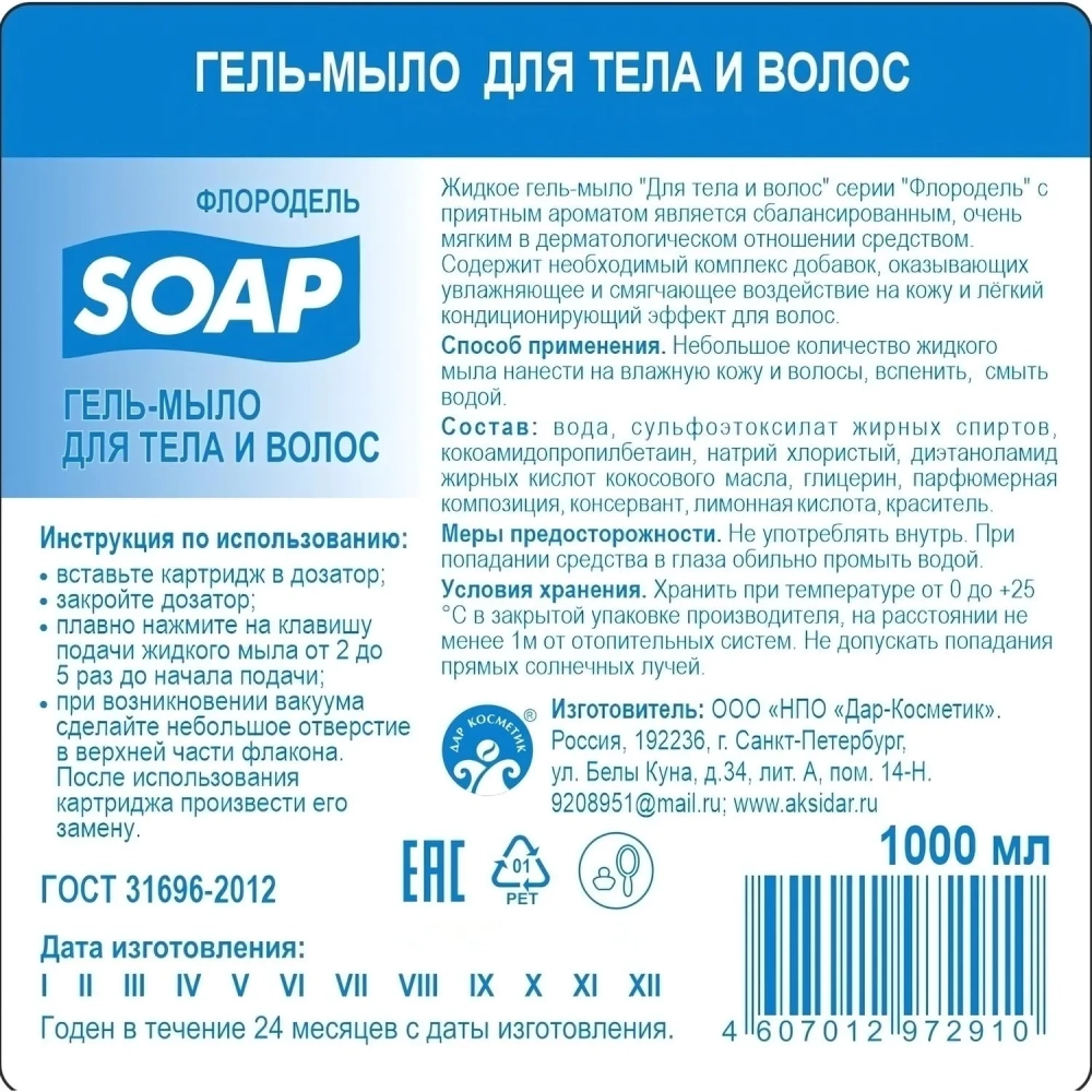 Картридж с жидким мылом Флородель гель-мыло для тела и волос S1 1000мл