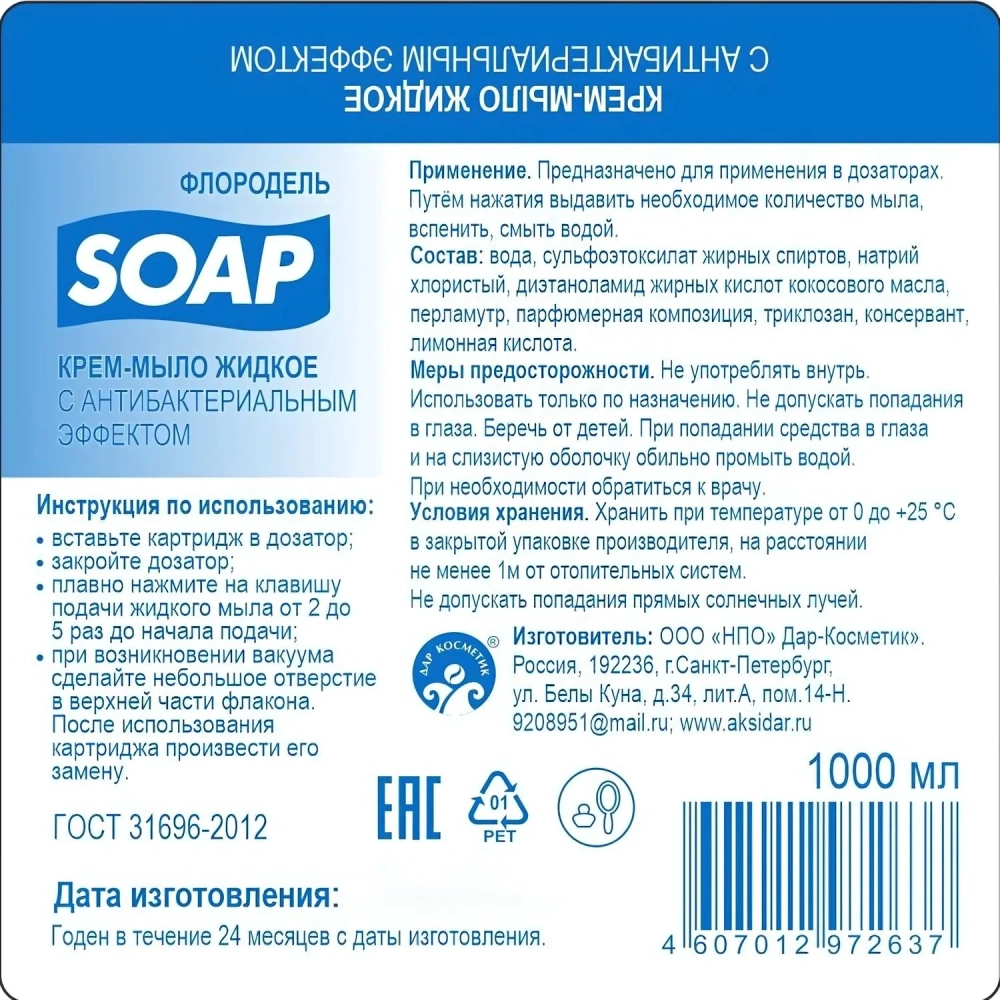 Картридж с жидким мылом Флородель крем-мыло с антибак эффектом S1 1000мл