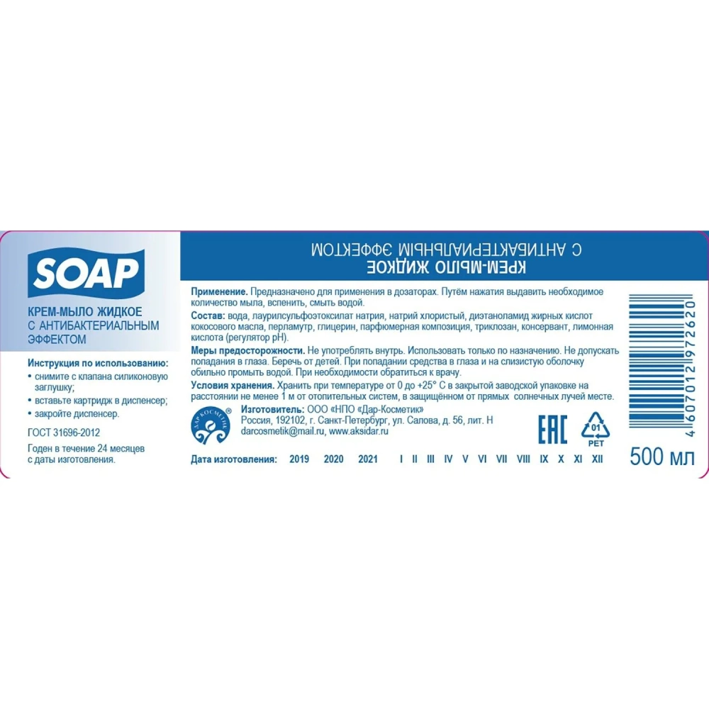Картридж с жидким мылом Флородель крем-мыло с антибак эффектом S2 500мл