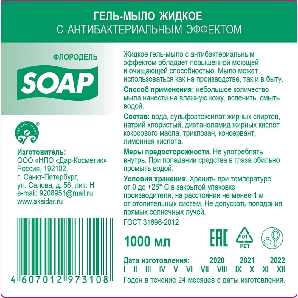 Картридж с жидким мылом Флородель мыло-гель с антибак эффектом S1 1000мл