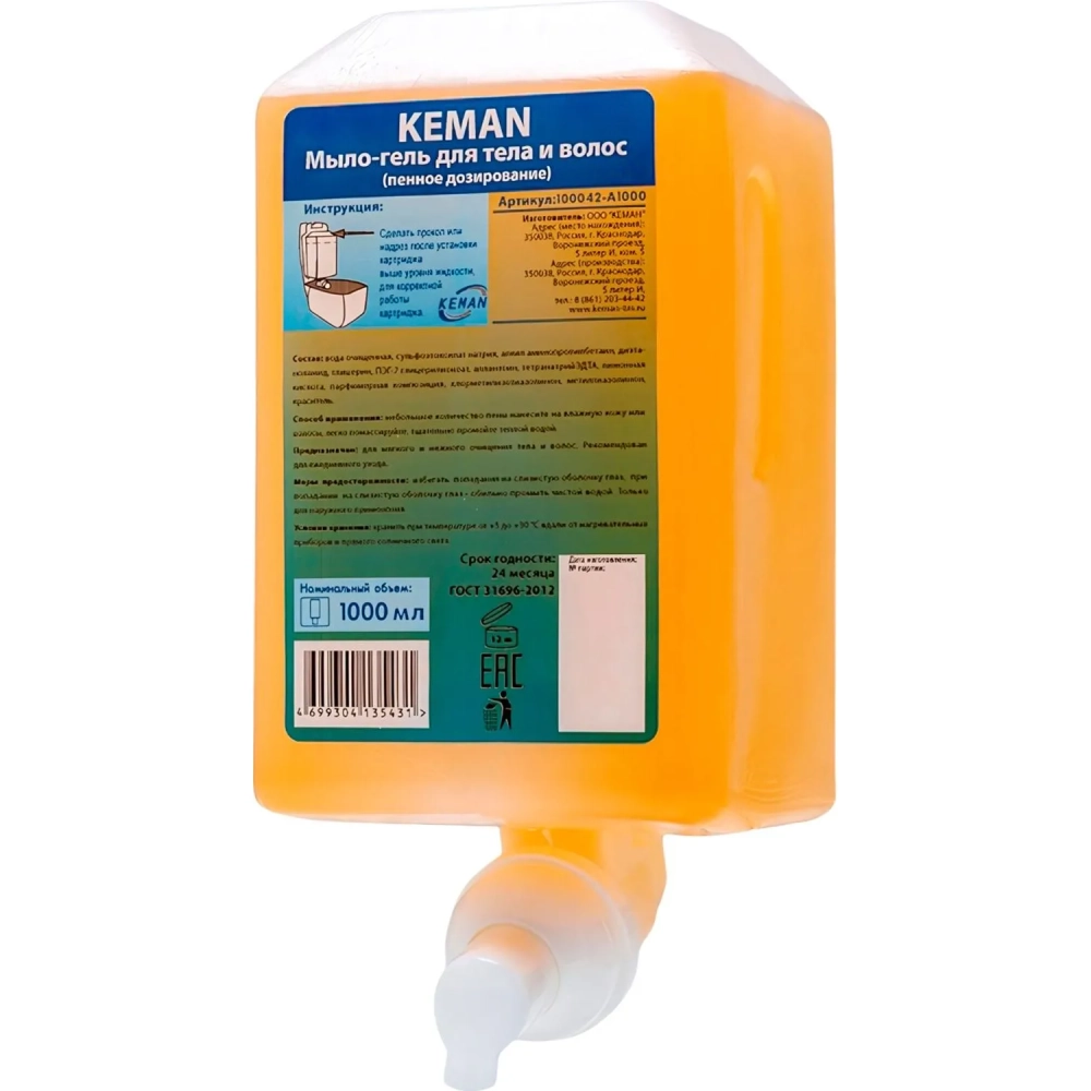 Картридж с жидким мылом KEMAN гель д/тела,волос пенн 1000мл_КК 100042-А1000