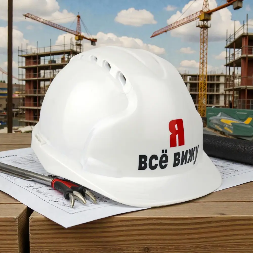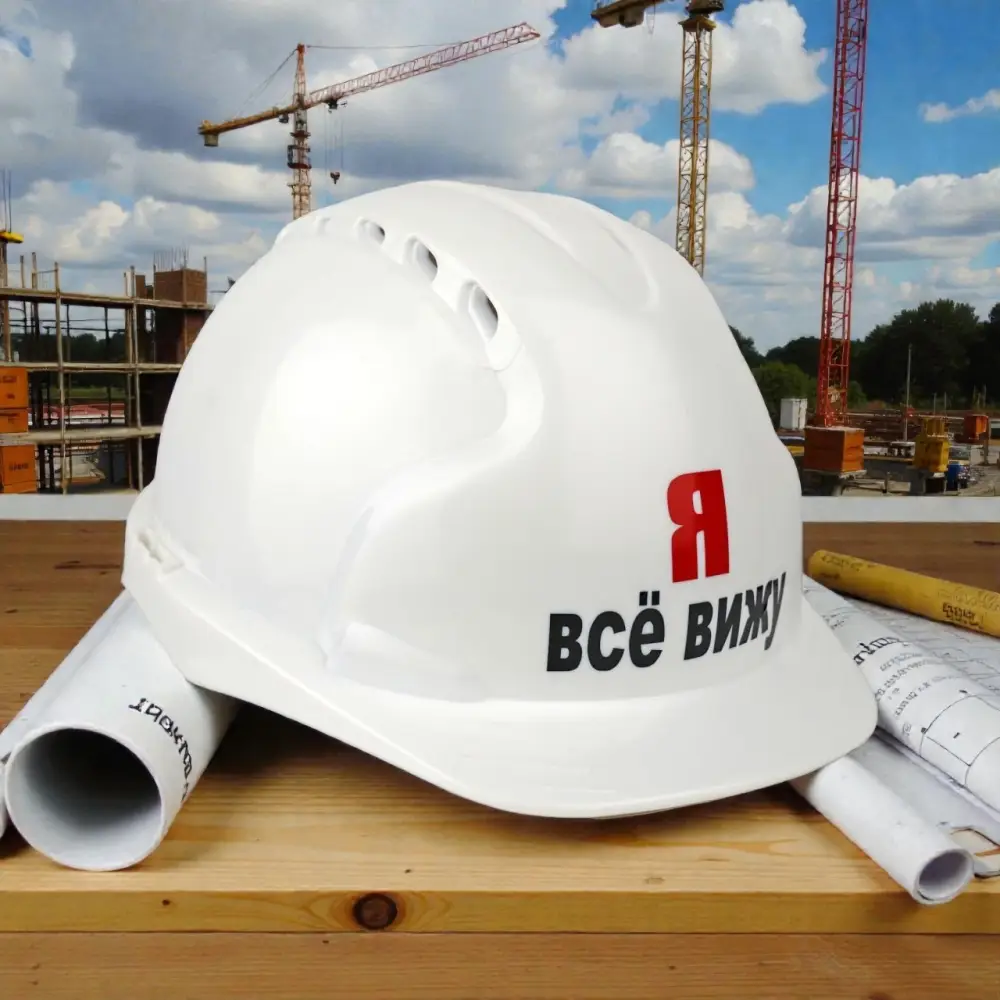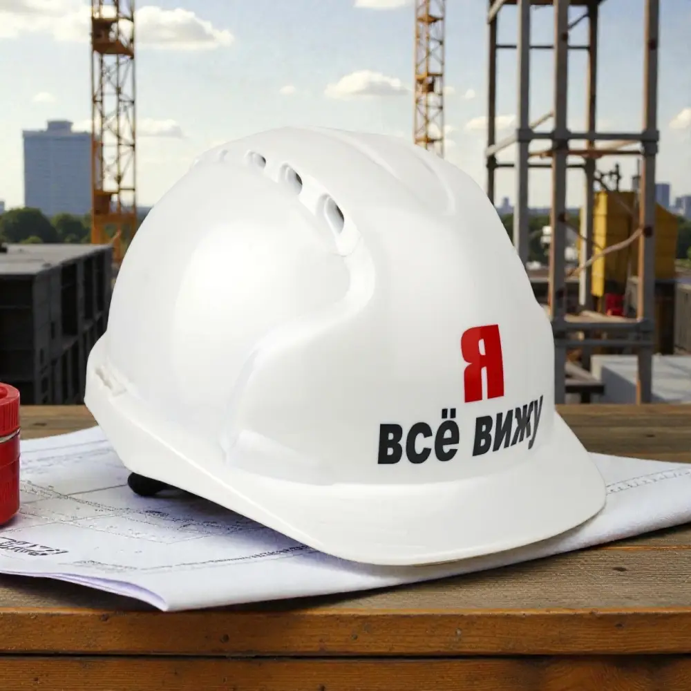 Каска защитная Я ВСЕ ВИЖУ с храповым механизмом