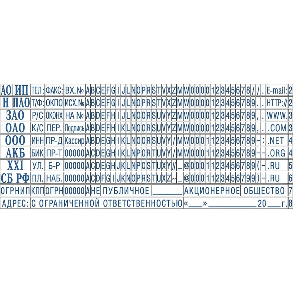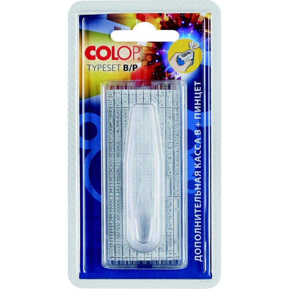 Касса букв,цифр,симв.доп.+ пинцет рус.,лат.,сокращ.3,1/2,2мм TS B/P Colop