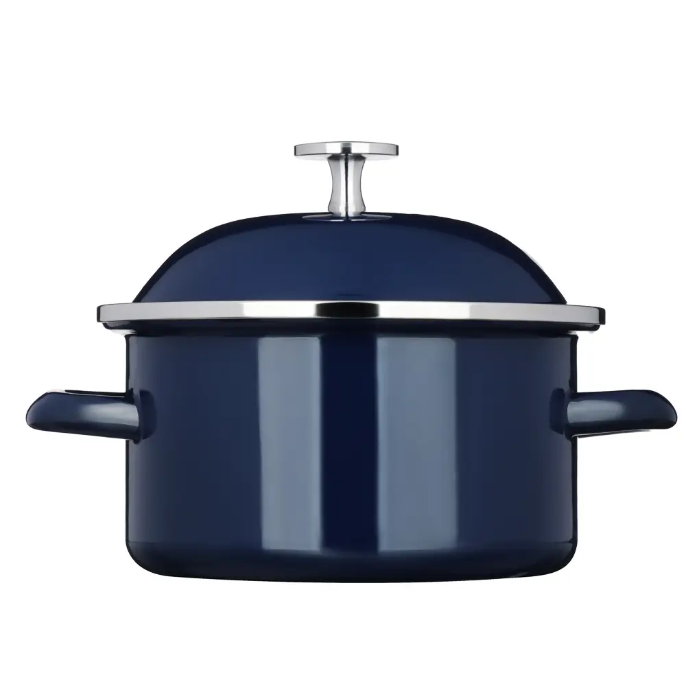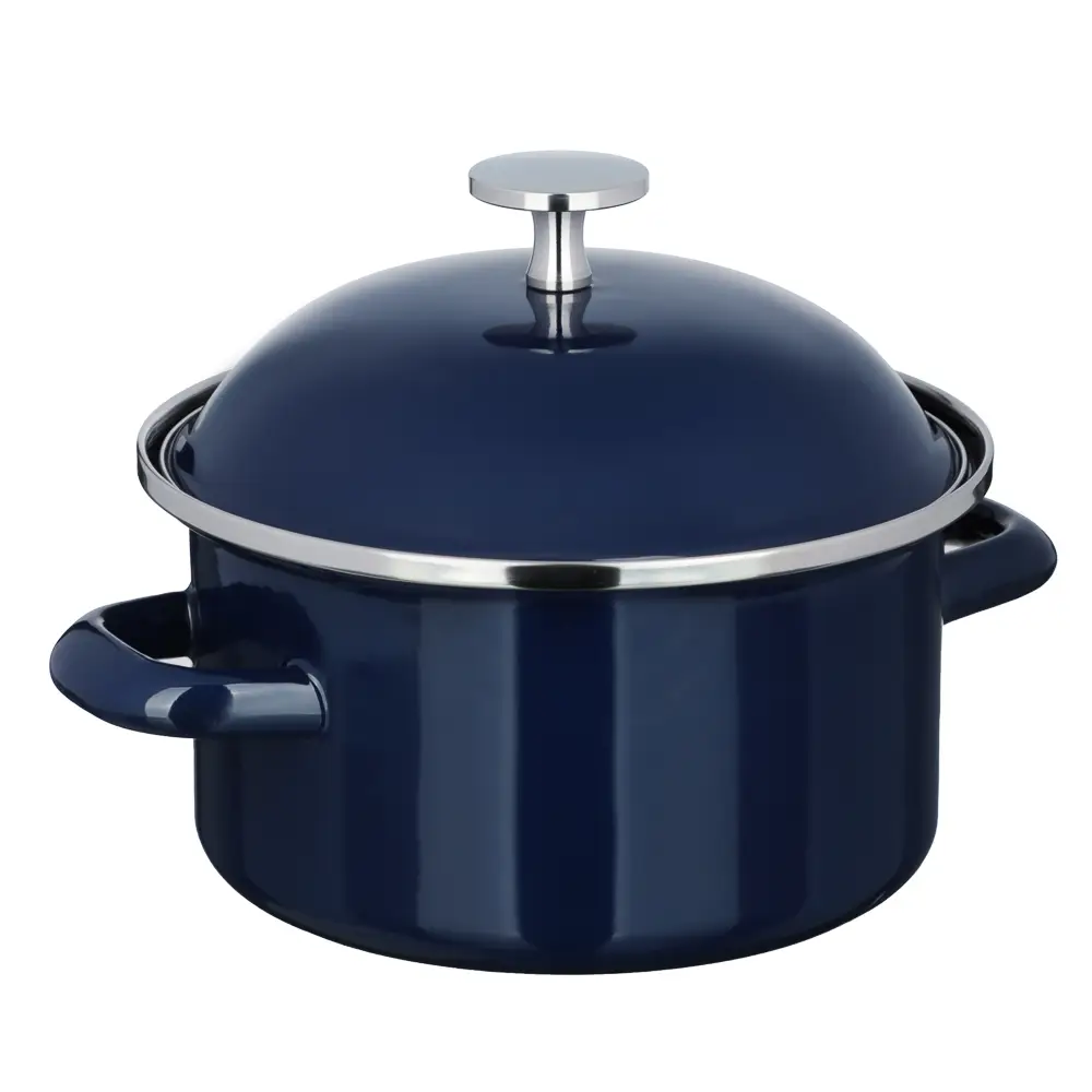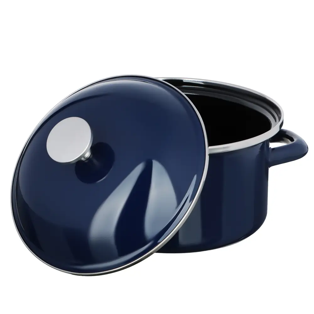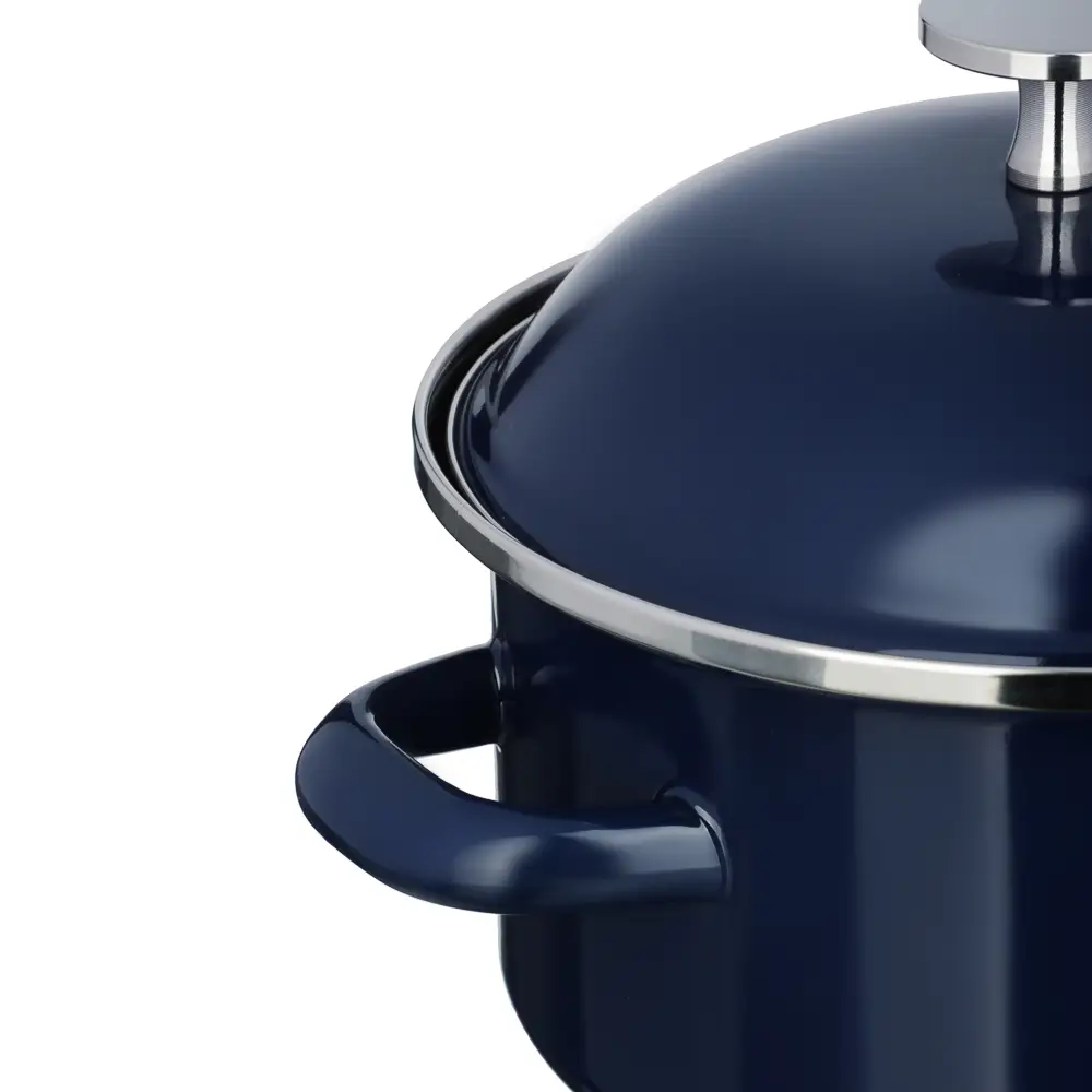 Эмалированная кастрюля VETTA «Ноэми», диаметр 18 см, объем 1,6 л, с крышкой – это посуда для приготовления первых блюд и компотов, изготовленная из качественной нержавеющей стали с надежным экологичным эмалированным покрытием. Имеет строгий дизайн в темно-синем цвете, который гармонично сочетается с любой другой посуды и актуально смотрится в интерьере любой кухни. Кастрюля обеспечивает равномерное приготовление блюд, устойчива к деформации при длительном нагреве. Эмаль не искажает вкус продуктов, поэтому посуда подходит для хранения готовой еды. Подходит для всех типов плит, включая индукционные.