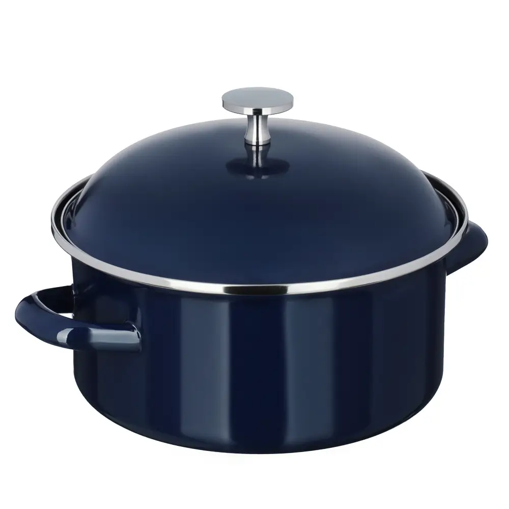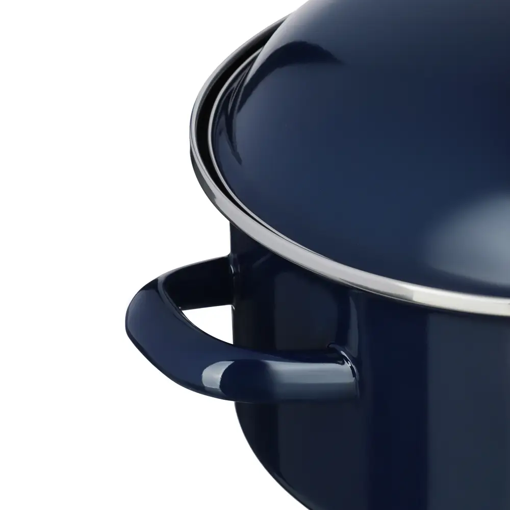 Эмалированная кастрюля VETTA «Ноэми», диаметр 22 см, объем 2,7 л, с крышкой – это посуда для приготовления повседневных блюд на домашней кухне. Идеально подходит для варки супов, овощей, приготовления компотов. Экологичная эмаль защищает содержимое от окисления, не выделяет вредных веществ и не искажает вкус блюд. Кастрюля имеет стильный дизайн в однотонном темно-синем цвете, гармонично смотрится в интерьере кухни. Легко моется, устойчива к деформации при длительном нагреве. Подходит для всех типов плит, включая индукцию.