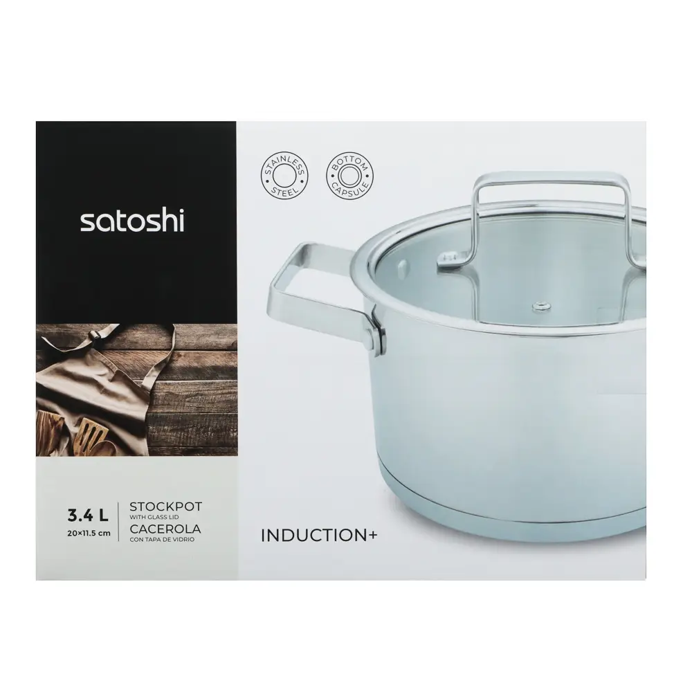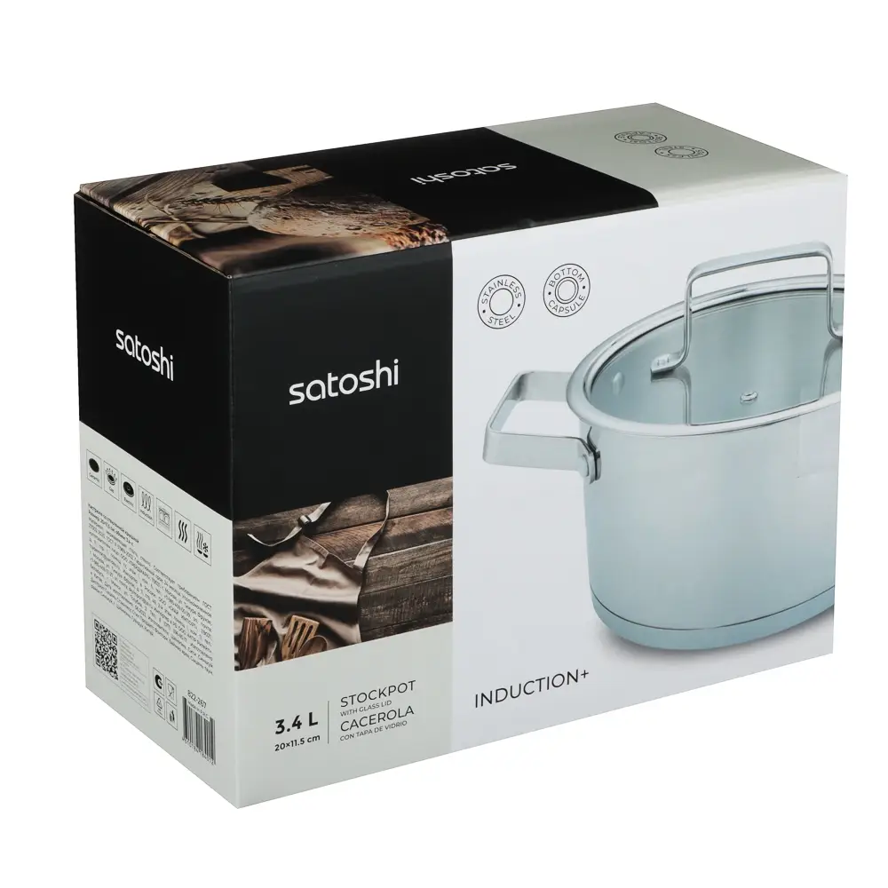 Кастрюля SATOSHI Шато, 3,4л, 20х11,5см. со стеклянной. крышкой, индукция