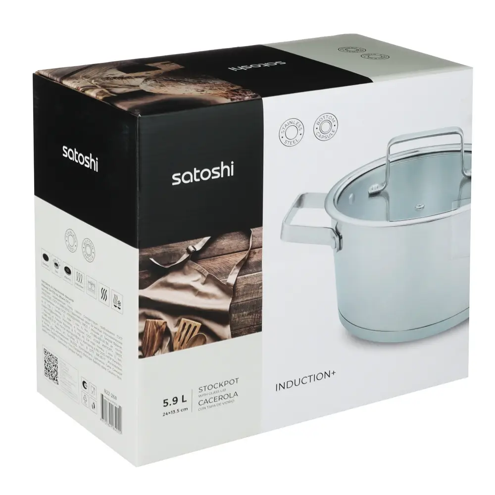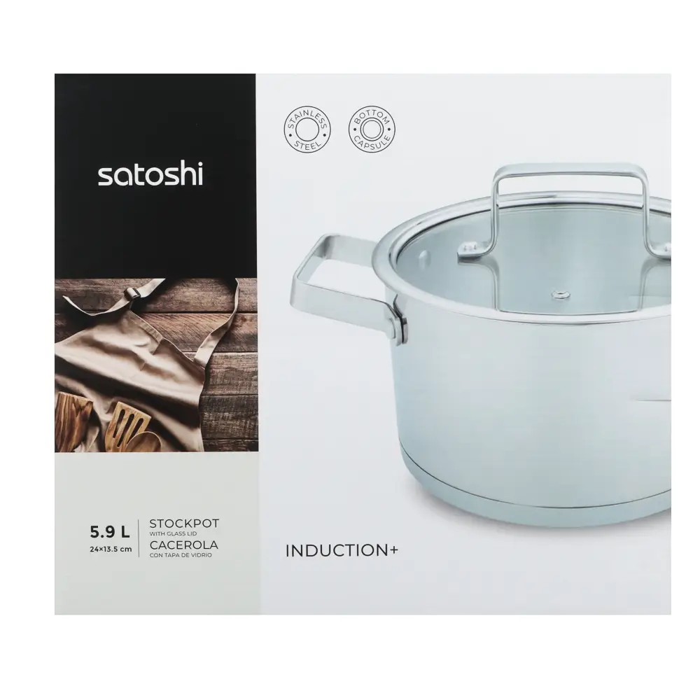 Хотите обновить посуду для приготовления еды? Кастрюля Satoshi из коллекции Шато объемом 5,9 л со стеклянной крышкой сочетает в себе современные технологии и стильный дизайн. Это универсальная посуда из нержавеющей стали, созданная по последним технологиям. Посуда из нержавеющей стали не окисляется, материал не впитывает и не выделяет запахи, что положительно влияет на вкус пищи. Кастрюля Satoshi оснащена капсульным дном. Вода закипает быстрее. Ингредиенты не прилипают, не подгорают. Пища готовится равномерно и качественно. Кастрюля оснащена ручками, которые всегда остаются холодными. Подходит для всех типов плит, включая индукцию.