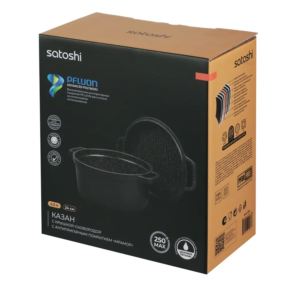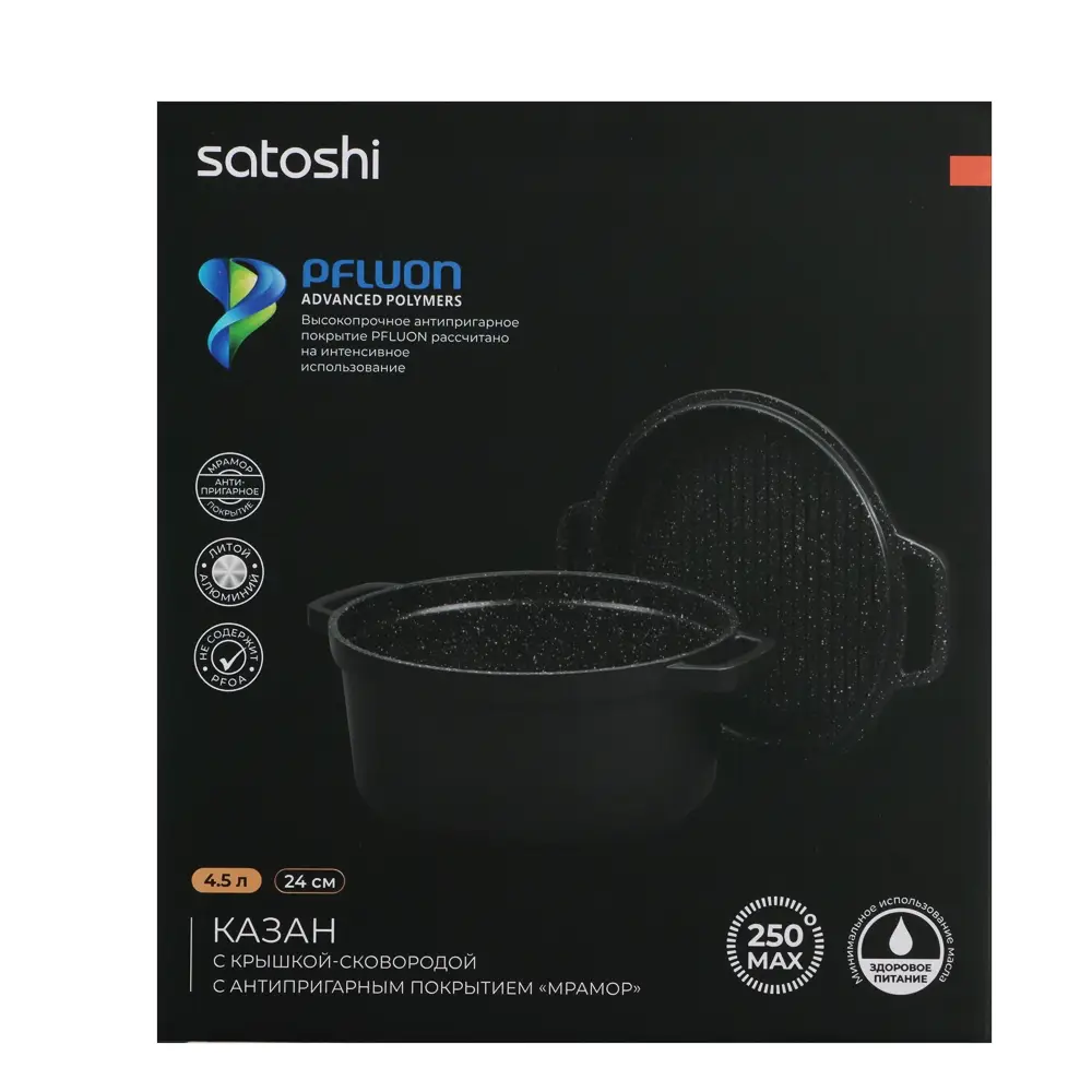 Казан SATOSHI Cheget 4,5 л - литой, с крышкой-сковородой, антипригарное покрытие, для всех плит, индукция